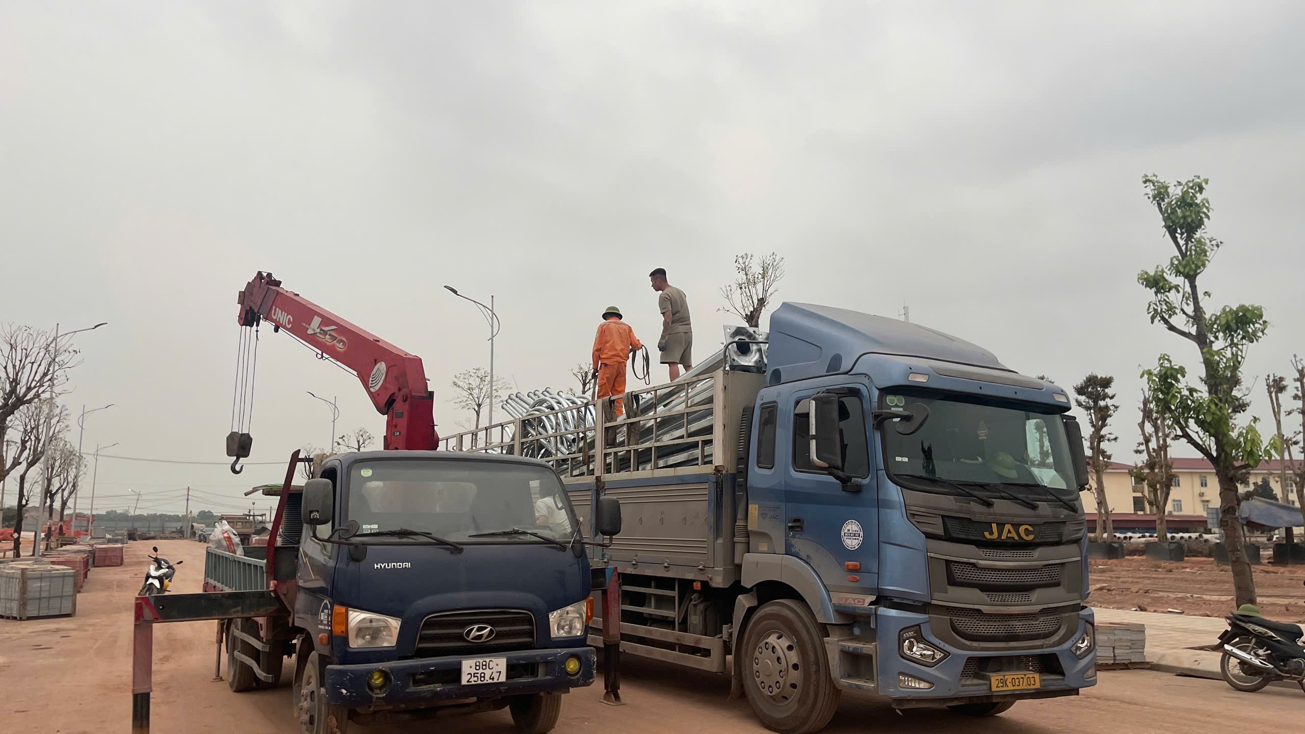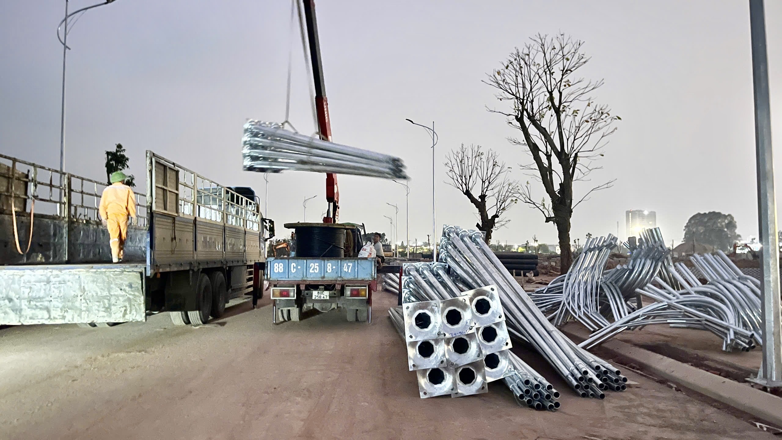 dựng cột đèn , lắp đặt đèn chiếu sáng đến hoàn thiện hệ thống ánh sáng
